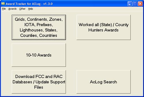 AC Log Awards Tracker N3FJP's ACLog program for logging, David Treat W5DJT has developed and improved his ACLog Awards Tracker program. It has the ability to crawl through your entire ACLog logbook file, locate various info for all sorts of awards, and export the files needed for submission. David has also improved the ACLog search function to allow for better filtering of search parameters. You can get David W5DJT's "ACLog Awards Tracker" program from his site at http://www.w5djt.com for free!! |