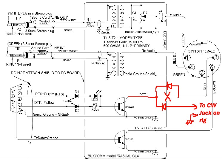 NOTE 1 - If you're interfacing the Buxcomm Rascal & HRD to a newer rig that does accept the TRANSMIT command via CAT, you won't need to implement the com port keying method with the WD7F Keying Utility like I did for my IC-756.