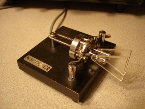 Bencher Paddles I love these Iambic paddles. They are usually connected to the IC-756, but I also use them on the other rigs from time to time. They have a great feel and are easy to use. They were a parting gift from a company I used to work for, and were picked out by then co-worker and still friend and ham Garry KG4D. |