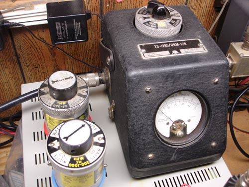 Signal Generators Here are the generators I use on my workbench. There is an old military TS-497B/URR Signal Generator I've had for years...tough as nails and keeps on running. There is a RF Signal Generator SG-4160B and Audio Generator AG-2601A by Lodestar. I also have a HP-618C Microwave Signal Generator that's good up to around 6ghz. |