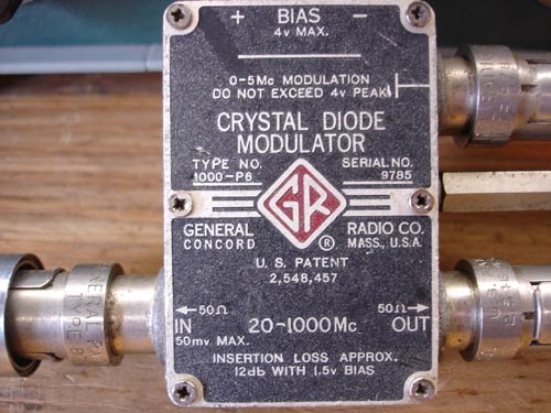 General Radio 1000-p6 This is a General Radio 1000-p6 Crystal Diode Modulator. It provides amplitude modulation of a RF carrier, and is good from 20-1000 mhz. It is mostly a display item due to it's vintage status, but will probably be utilized in a homebrew AM transmitter project. |